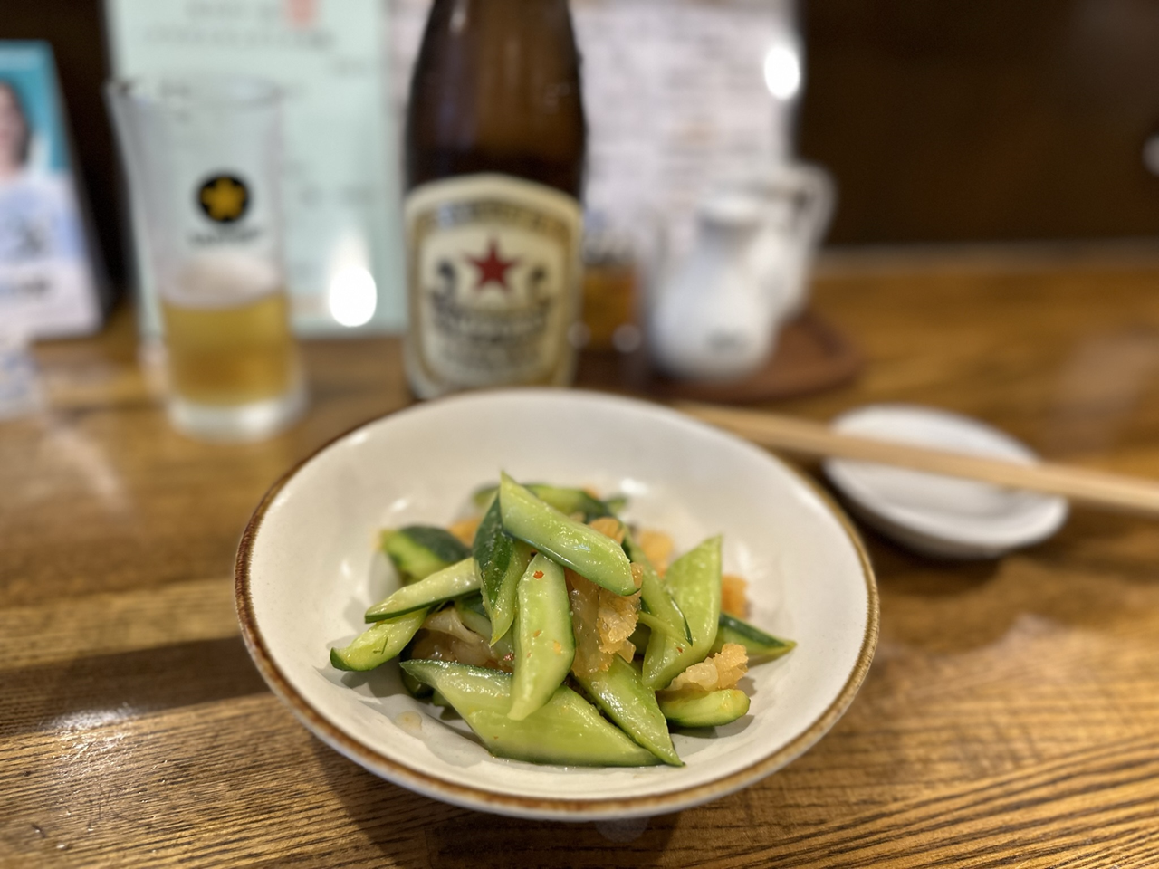 そんなことを言われたことがある創作中華のお店にいってきました。当然期待値も高かった。まずは胡瓜とクラゲの和え物というスタンダードな冷菜。