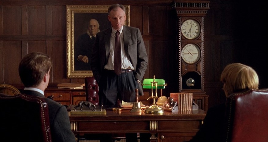映画の背景はサンクスビギンズ(感謝祭)の時期なので当然寒い時期なわけです。そんな中、画面左の自然に襟を立てる着こなしとかカッコいいんですよ。このポイントは自然にやっているところ。日本人だとなかなか難しい。