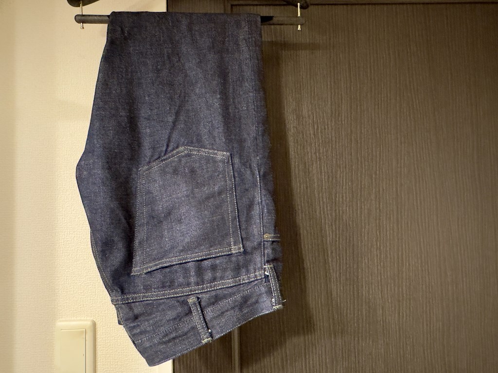 ワンウォッシュしたことで縮んだ結果、リジットと比べてやや細くなったような気がします。ただこの太さがちょうど良いかもって思いました。穿いて鏡を見た瞬間に「いいじゃん」って思ったので。